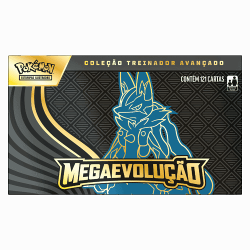 Pokémon Treinador Avançado Mega Evolução Lucario (PT-BR): box especial da linha Treinador Avançado com destaque para Mega Lucario ex, cartas de suporte da expansão Mega Evolução e itens temáticos para…